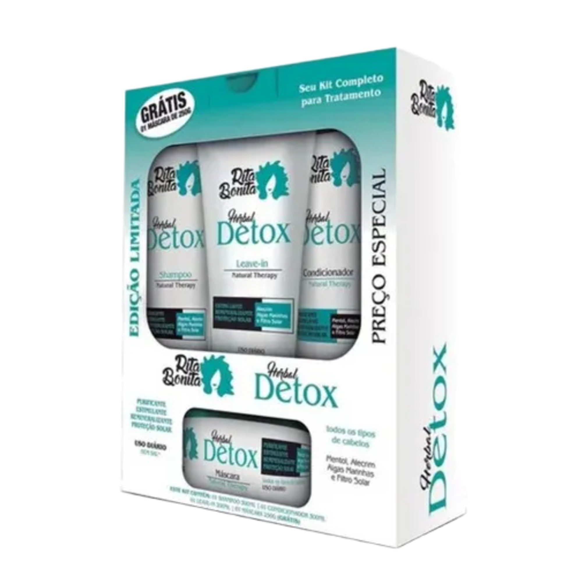 Kit RITA BONITA Herbal Detox - Shampoo, Condicionador, Máscara e Leave-in para Purificação, Crescimento e Hidratação Capilar