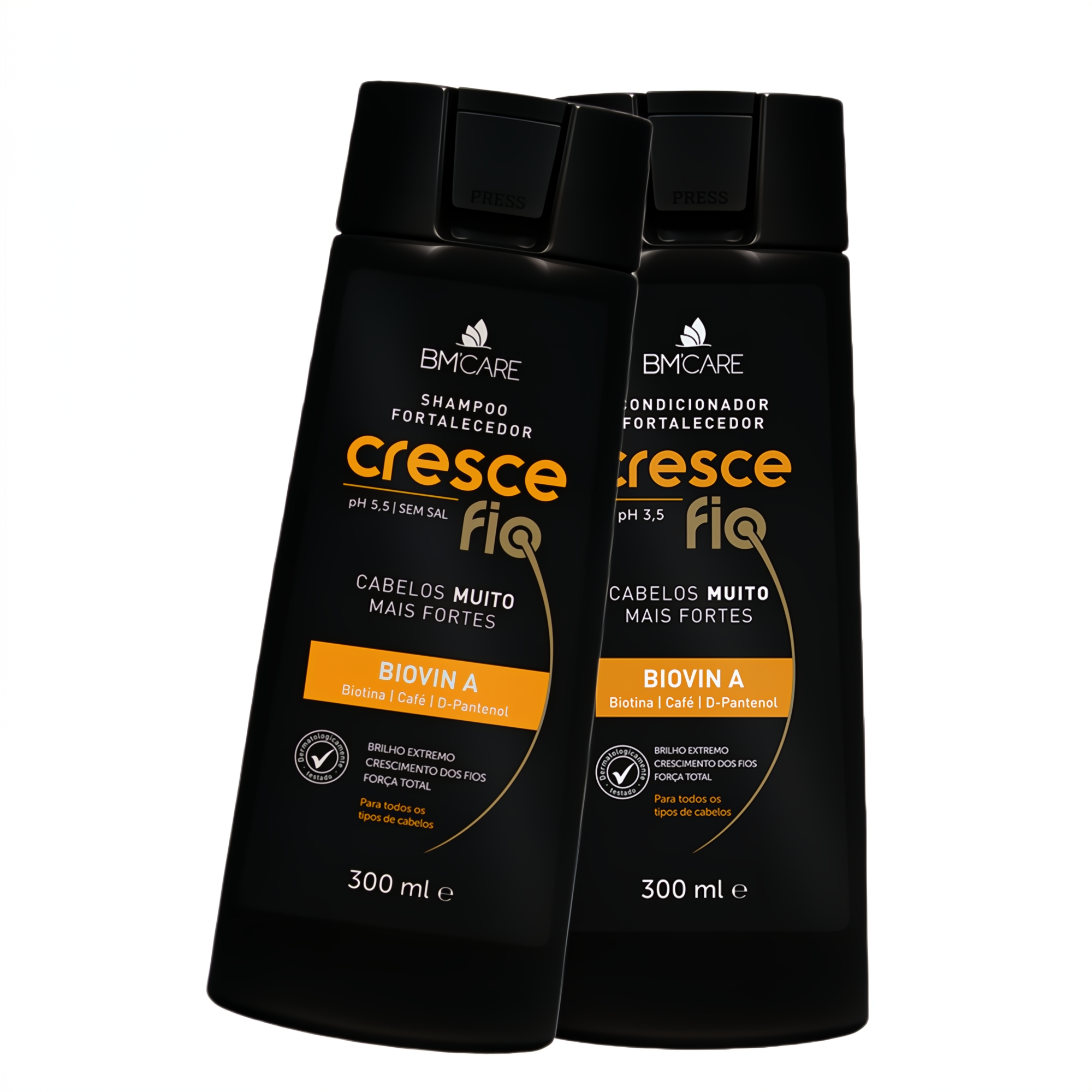 Enquanto o pH 5,5 do Shampoo Cresce Fio garante uma limpeza suave e equilibrada para quem sofre com quebra, o pH 3,5 do Condicionador Cresce Fio finaliza com a selagem das cutículas, evitando perda de hidratação e promovendo brilho, maciez e resistência. O resultado é um cabelo mais encorpado, com aspecto saudável e menos queda visível na escova, no travesseiro e no banho.