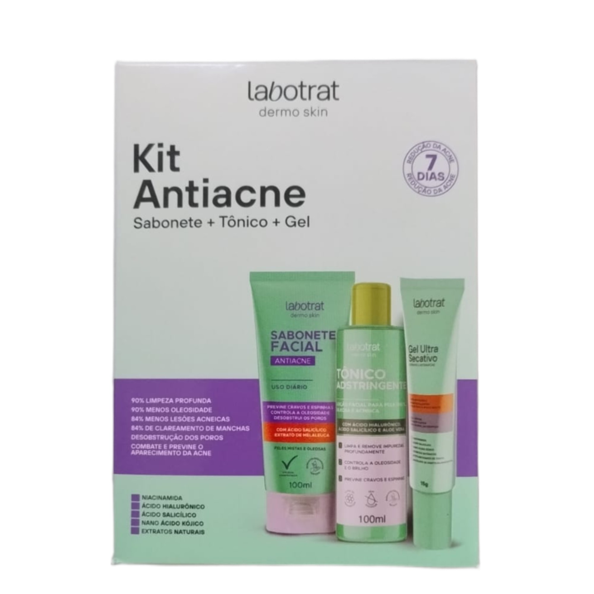 ℹ️ Sim. O tratamento antiacne Labotrat Dermo Skin combina Sabonete Facial Antiacne, Tônico Adstringente e Gel Ultra Secativo em uma rotina completa para limpar, tonificar e tratar a pele oleosa e acneica. Ele reduz espinhas, ajuda a controlar o excesso de sebo e suaviza manchas pós-acne com textura leve e toque seco.