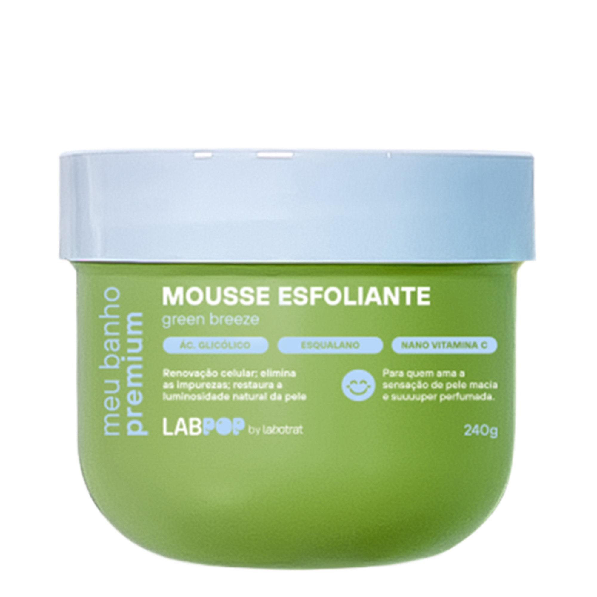 O LABOTRAT Mousse Esfoliante Corporal LabPop Green Breeze é aquele tipo de produto que muda o jogo da sua rotina de banho. Com Ácido Glicólico, Esqualano e Nano Vitamina C, entrega esfoliação suave, renovação celular e pele com toque aveludado e viço natural. Textura mousse cremosa e aerada e aroma fresco para um ritual premium.